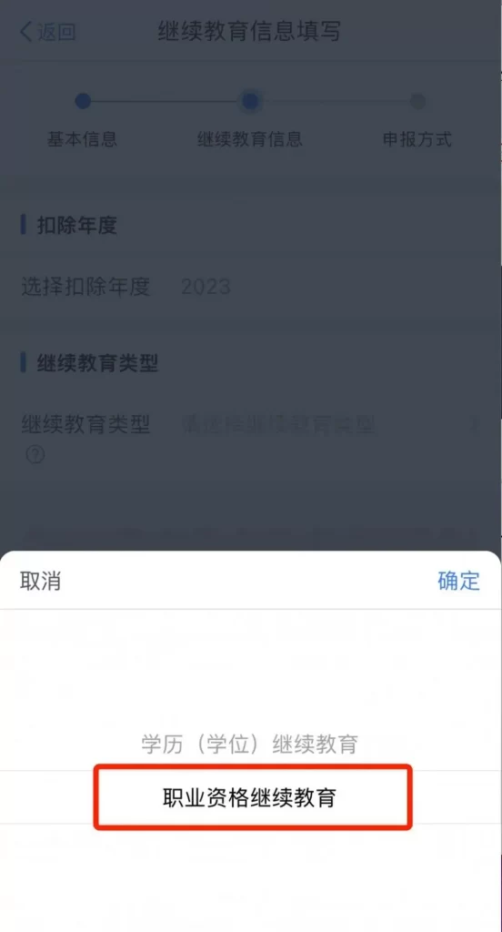 03填写基本信息和继续教育信息 ,选择【职业资格继续教育】